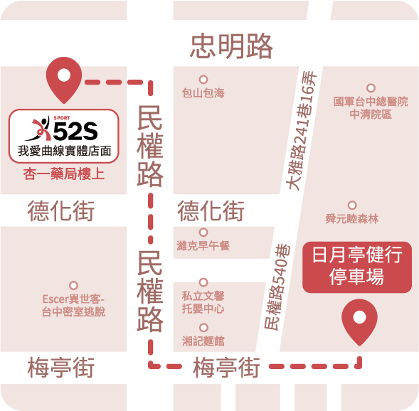 台中北區總店 地址 : 台中市北區民權路595號2樓之1 服務電話:04-22010698 傳真:04-22083373 E-Mail:52stw2013@gmail.com